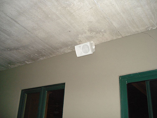 More speakers mounted on the outside of the house.